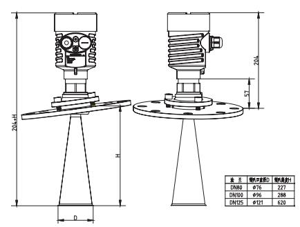 SKD59萬(wàn)向喇叭雷達(dá)物位計(jì)外型尺寸圖