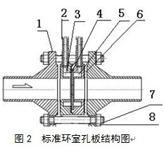 ①?圖 2標準環(huán)室孔板節(jié)流裝置結(jié)構(gòu)圖