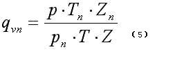 式中,qVn、qV分別為標(biāo)準(zhǔn)狀態(tài)下(0℃或20℃,101.325kPa)和工況下的體積流量; Pn、P分別為標(biāo)準(zhǔn)狀態(tài)下和工況下的絕對壓力;Tn、T分別為標(biāo)準(zhǔn)狀態(tài)下和工況下的熱力學(xué)溫度;Zn、Z分別為標(biāo)準(zhǔn)狀態(tài)下和工況下氣體壓縮系數(shù)。