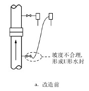 蒸汽是石油化工企業(yè)重要的二次能源,在企業(yè)能源計(jì)量中占有重要地位。從企業(yè)效益出發(fā),要降低生產(chǎn)成本則需降低蒸汽的消耗量,蒸汽計(jì)量由此成為企業(yè)計(jì)量技術(shù)工作的重點(diǎn)之一。儀表都有一定的測(cè)量范圍和合適的量程比,可是工藝生產(chǎn)過程往往又有不同負(fù)荷狀態(tài)下的多種運(yùn)行方式,隨之對(duì)應(yīng)的蒸汽用量就會(huì)出現(xiàn)大流量、正常流量及小流量等不同流速,蒸汽的物理參數(shù)如溫度、壓力及密度等參數(shù)也會(huì)在不同負(fù)荷狀態(tài)下發(fā)生相應(yīng)的變化。任何類型測(cè)量蒸汽的儀表要滿足不同工況下的準(zhǔn)確測(cè)量實(shí)際上很困難。這就要求在測(cè)量方法和儀表選型上根據(jù)測(cè)量回路的要求充分考慮各種計(jì)量?jī)x表的優(yōu)缺點(diǎn),選擇量程比合適的儀表并采用適當(dāng)?shù)难a(bǔ)償措施,如溫壓補(bǔ)償、蒸汽狀態(tài)及分段線性化補(bǔ)償?shù)。但是隨之而來就會(huì)產(chǎn)生安裝位置、直管段及維護(hù)需求等一系列的安裝問題。 為此,圍繞當(dāng)前常用的差壓式和速度式蒸汽流量計(jì)的選型、安裝注意事項(xiàng)以及安裝和運(yùn)行中容易發(fā)生的問題展開討論,重點(diǎn)考慮蒸汽流量?jī)x表選型時(shí)儀表和被測(cè)介質(zhì)的特性、生產(chǎn)工藝的變化、儀表的安裝條件及管理維護(hù)等因素的影響。 1 蒸汽流量計(jì)的類型 ①企業(yè)使用蒸汽流量計(jì)一般用于: 計(jì)量蒸汽用量,進(jìn)行內(nèi)部或外部計(jì)費(fèi)結(jié)算; 監(jiān)測(cè)能源的使用效率,如根據(jù)熱焓確定添加的蒸汽量; 改進(jìn)工藝過程的控制效果,比如使流量恒定在設(shè)定值或按一定的規(guī)律變化。 用戶應(yīng)根據(jù)自身需要,再結(jié)合流量計(jì)的相關(guān)特性選擇合適的蒸汽流量?jī)x表。目前,測(cè)量蒸汽介質(zhì)普遍選用的是差壓流量計(jì)和渦街流量計(jì)配密度補(bǔ)償方式完成計(jì)量。 1.1 差壓式流量計(jì) 差壓式流量計(jì)在穩(wěn)流情況下,管道中流量與壓差的平方根成正比;诹黧w質(zhì)量守恒( 連續(xù)性方程) 和能量守恒( 伯努利方程) 定律,可知基本的流量計(jì)算式為: 式中 C ———流出系數(shù)( 實(shí)際流量/理論流量) ; d ———節(jié)流件孔徑,m; Δp ———節(jié)流件上下游的壓差,Pa; qm———蒸汽質(zhì)量流量,t/h; β ———直徑比,β = 孔板直徑 d /管道直徑D; ε ———可膨脹性系數(shù),蒸汽的 ε 小于 1; ρ ———蒸汽密度,kg /m3。 差壓式流量計(jì)中常用的有孔板流量計(jì)和新型V 錐流量計(jì)兩種型式。 孔板流量計(jì)以簡(jiǎn)單結(jié)實(shí)、成本低廉及無需額外標(biāo)定等優(yōu)勢(shì)在工業(yè)中獲得廣泛應(yīng)用。但它也有自身的缺點(diǎn): 受限于工作原理,量程比限制在3∶ 1 ~ 5∶ 1; 在水錘作用下,孔板會(huì)變形,如果設(shè)計(jì)或安裝不當(dāng)甚至?xí)氯艿? 孔板的直角邊緣在長(zhǎng)期運(yùn)行后會(huì)磨損,特別是在進(jìn)行蒸汽介質(zhì)測(cè)量時(shí)會(huì)改變孔板特性,影響測(cè)量精度,因此必須對(duì)孔板進(jìn)行周期檢查并予以更換; 孔板流量計(jì)一般需要較長(zhǎng)的直管段以保證精度,表 1 給出了不同直徑比 β 和不同上游擾流布置情況下所建議的直管段長(zhǎng)度。 V錐流量計(jì)具有壓損小、量程比寬、直管段短及測(cè)量精度高等優(yōu)點(diǎn),這些特點(diǎn)來源于特殊的設(shè)計(jì)結(jié)構(gòu)———錐體位于管道中心處。在計(jì)算工況下的實(shí)際流量時(shí),應(yīng)先計(jì)算出流體流過V形錐的有效面積S和等效直徑比β,再代入式(1)計(jì)算得到。 雖然V錐流量計(jì)可以在直管段不夠長(zhǎng)的情況下較其他節(jié)流裝置有較高的測(cè)量精度,但所需的前后直管段仍要視具體情況而定。有數(shù)據(jù)顯示,前置閘閥開度大于25%時(shí),各種開度下當(dāng)要求較高測(cè)量準(zhǔn)確時(shí),流量計(jì)前直管段長(zhǎng)度L=10D尚嫌不足,而不是各種情況下均為前0~3D、后0~1D的直管段,這個(gè)特點(diǎn)需要相關(guān)技術(shù)人員的高度重視。 當(dāng)測(cè)量蒸汽介質(zhì)的管道停汽檢修時(shí),管道底部會(huì)存有積水。恢復(fù)通汽后,在壓力推動(dòng)下,水的波動(dòng)很容易引起管道振動(dòng),流量較大時(shí)管道振動(dòng)劇烈甚至?xí)䲟p壞節(jié)流件造成生產(chǎn)事故。 1.2渦街流量計(jì) 流體流經(jīng)設(shè)置在管道內(nèi)的漩渦發(fā)生體時(shí)會(huì)產(chǎn)生流動(dòng)振蕩,在發(fā)生體的兩側(cè)交替產(chǎn)生規(guī)則漩渦,測(cè)定其振蕩頻率可以反應(yīng)流量的大小。當(dāng)工況條件合適時(shí),漩渦頻率f和流體速度v成線性關(guān)系,且與密度無關(guān),可表示為: 對(duì)于給定的流量計(jì),其質(zhì)量流量 qm為: 式中 A ———流量計(jì)的截面積,m2 式中 A ———流量計(jì)的截面積,m2 d ———漩渦發(fā)生體迎流面的最大寬度,m; f ———漩渦的釋放頻率,Hz; k ———對(duì)于給定的流量計(jì)為常數(shù); St———斯特羅哈爾數(shù),無量綱,當(dāng)雷諾數(shù) Re在 102~ 105時(shí)其值約為 0. 2; v ———發(fā)生體兩側(cè)的平均流速,m / s; ρ ———蒸汽密度,kg /m3。 與孔板流量計(jì)相比,渦街流